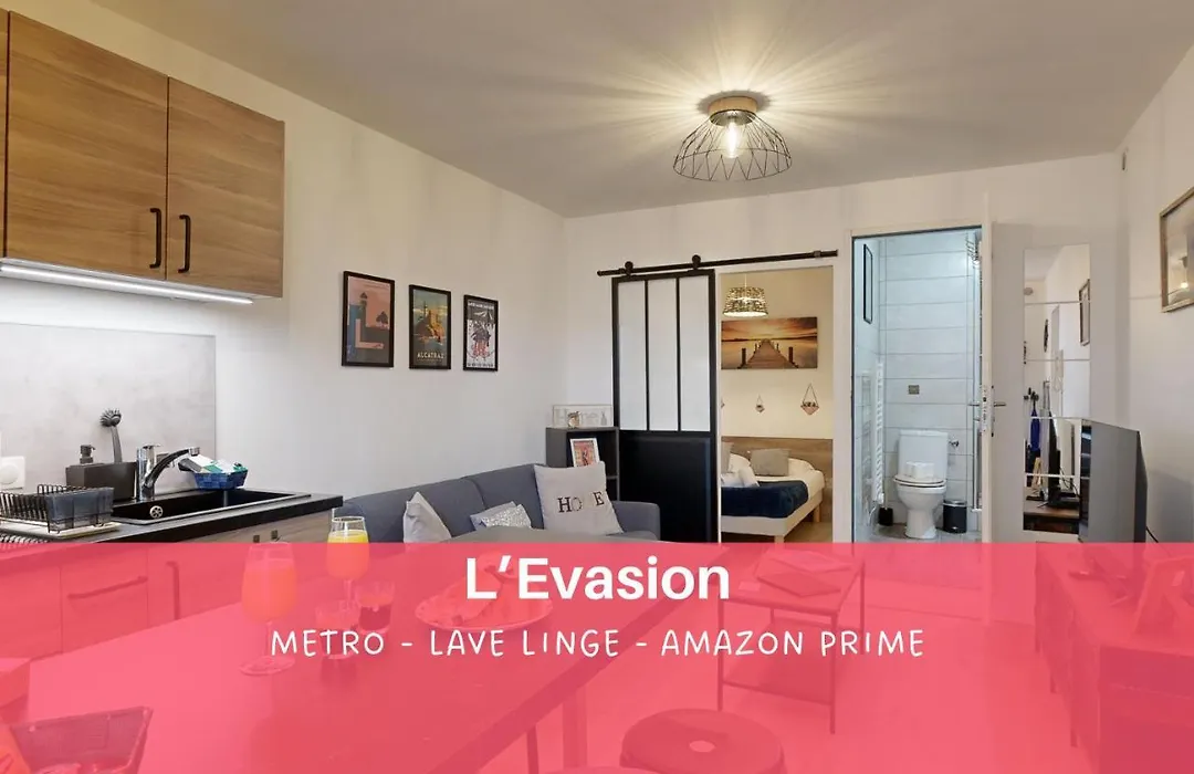Appartement expat renting - L’Evasion - Saint Michel - Métro comprend un patio, un coin salon et une cuisine avec un lave-linge pour un plus grand confort. L'hébergement dispose de 1 chambre à coucher. L'appartement est équipé d'une salle de bains dotée d'un sèche-cheveux et des draps de bain. Une toilette séparée et une douche sont également disponibles.